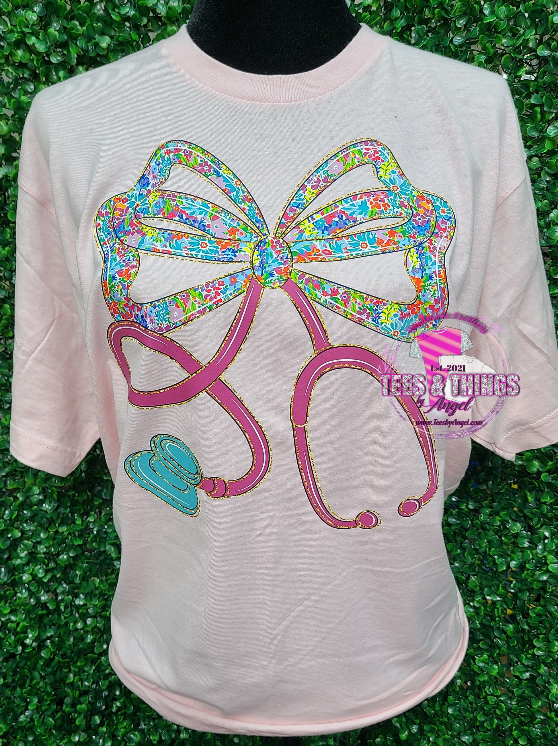 Adorable Bow Stethoscope teeshirt... Perfect for all nurses and staff. This is a graphic printed tee!Â