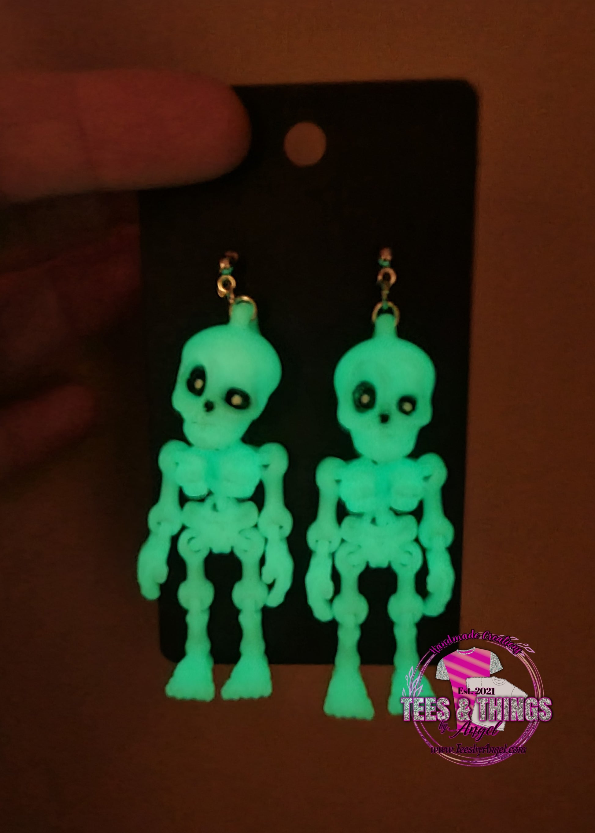 These are a must have... Articulated Glow in the Dark Skeleton Earrings! These are light weight and are 3D printed on sterling silver hooks.Â