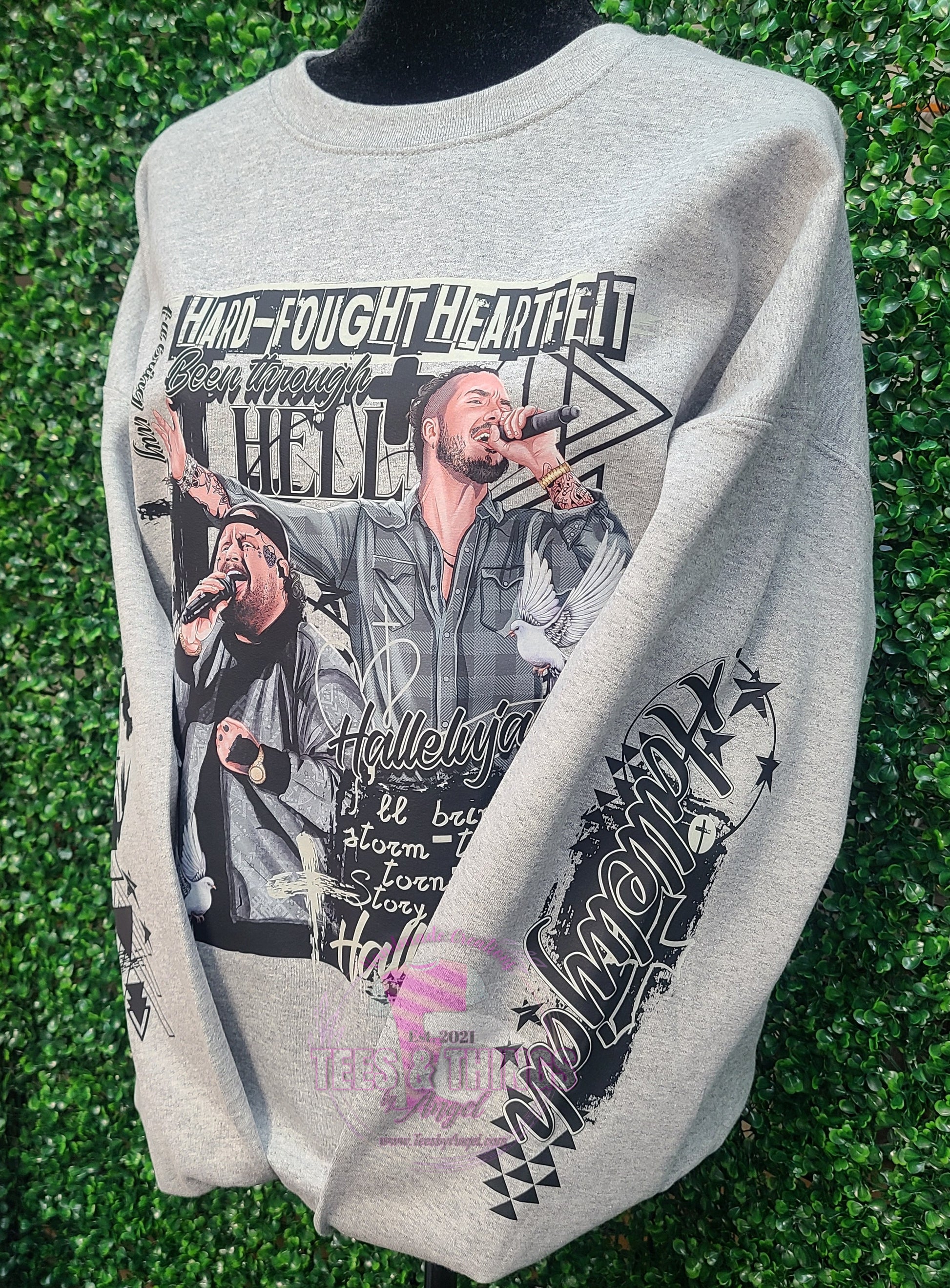 Hard fought heartfelt, Hallelujah... Jelly Roll inspired shirt. Teeshirt will not come with sleeve designs.