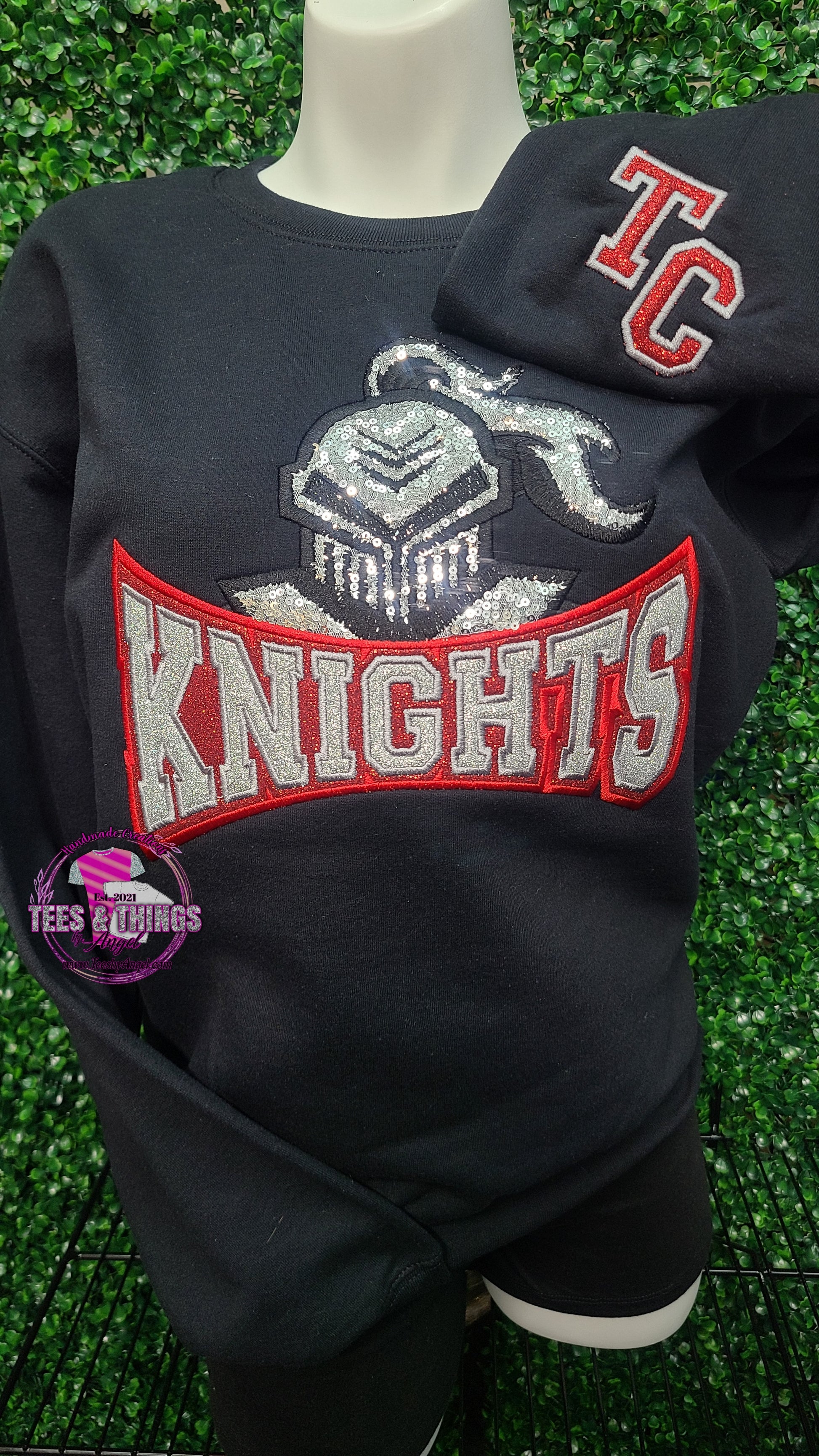 Tyler Consolidated KNIGHTS... Show your pride with this gorgeous sequin and glitter embroidered sweatshirt. Sweatshirt will come with TC sleeve cuff design. ππ©Ά