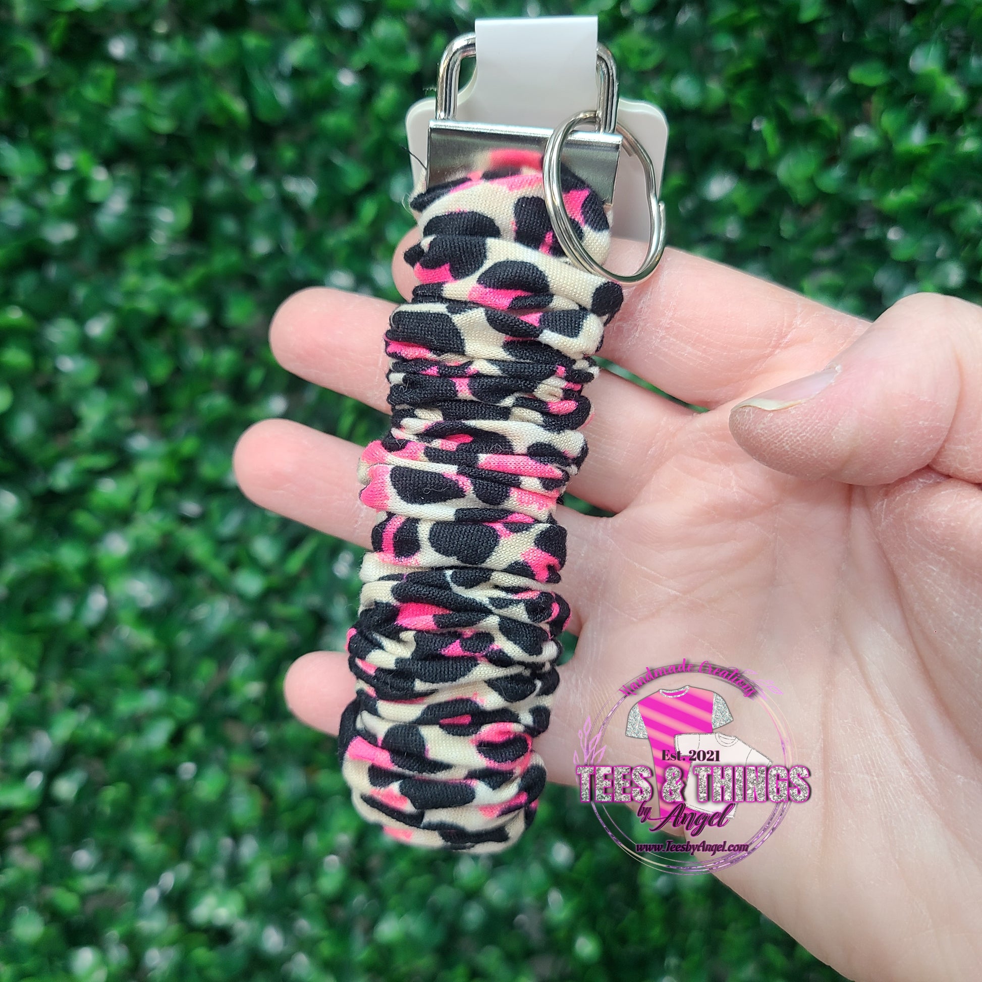 Neon Pink Leopard Scrunchie Keyfob Wristlet