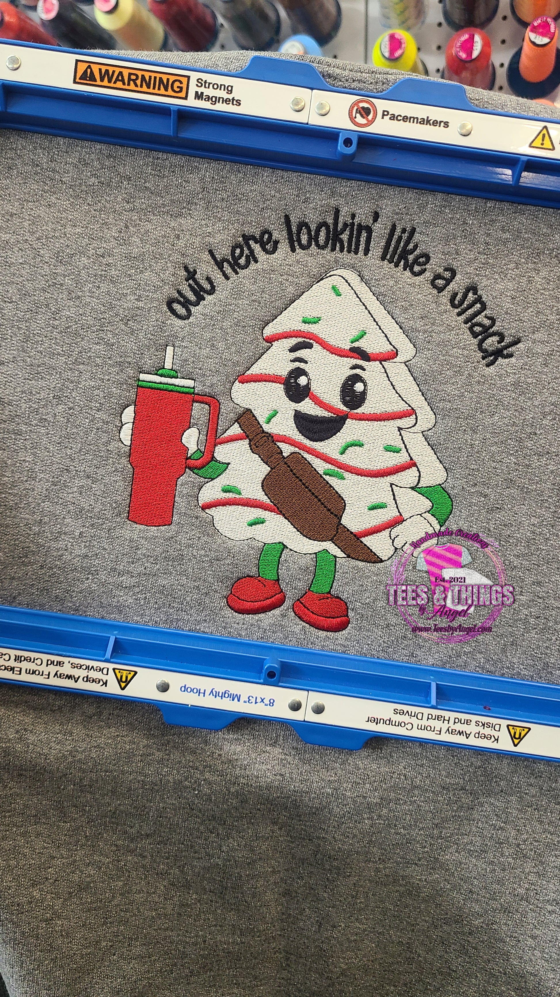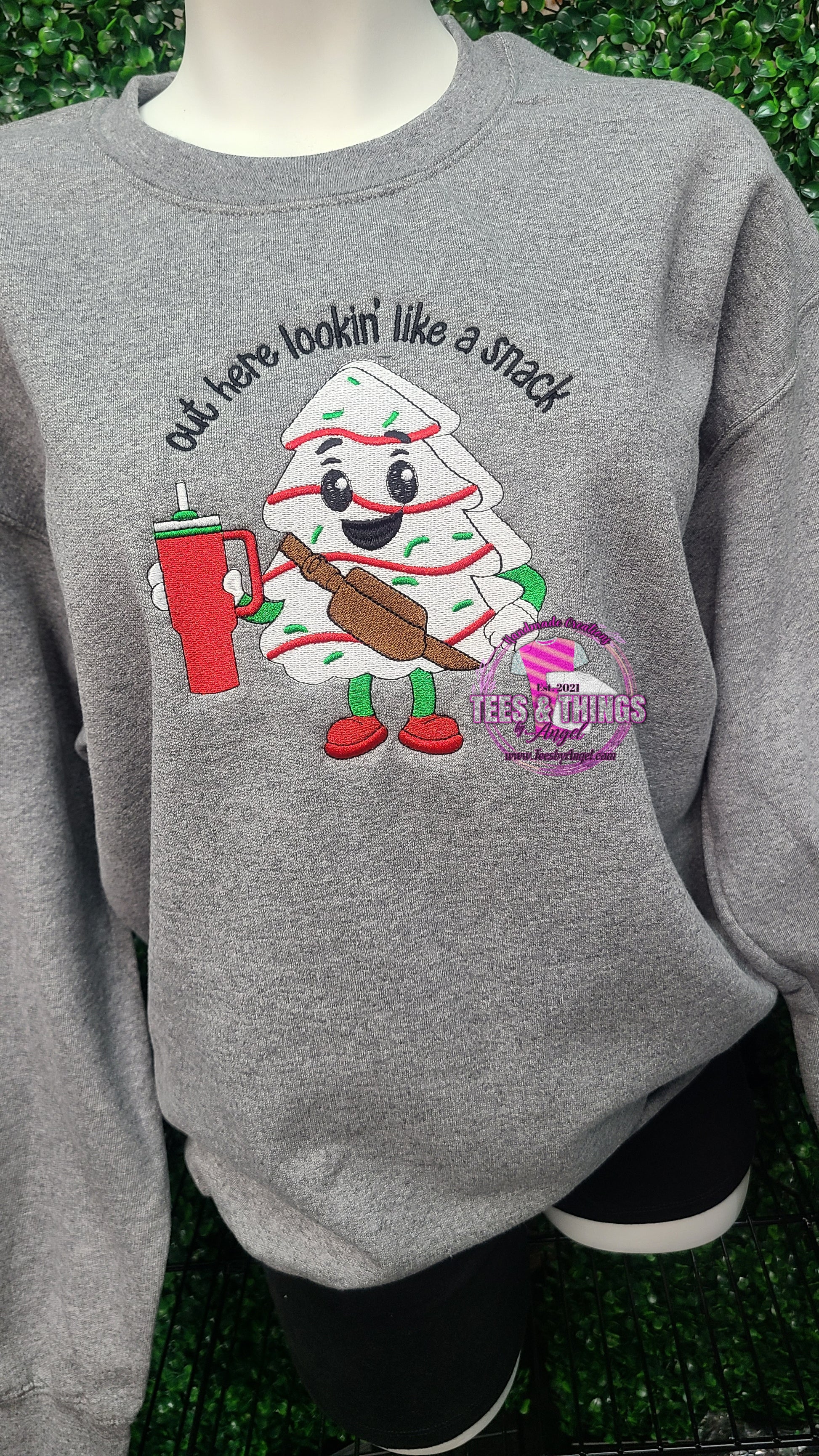 Embroidered sweatshirt inspired by Little Debbie Christmas Tree Cakes. This sweatshirt is a must have for Christmas. 🎄