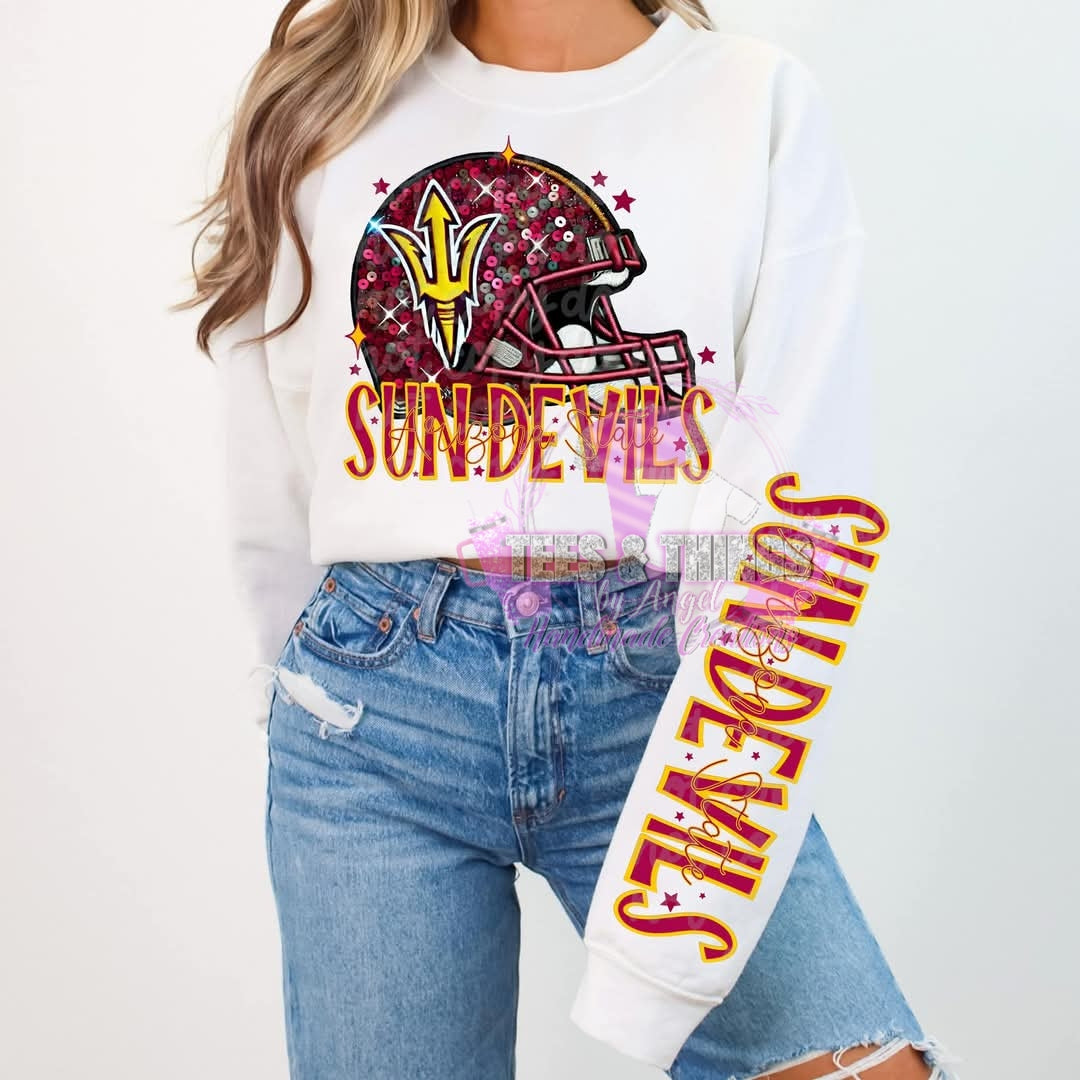 Sweatshirts will come with sleeve design as pictured. Sweatshirts are unisex and fit True to Size, they will NOT be cropped.
