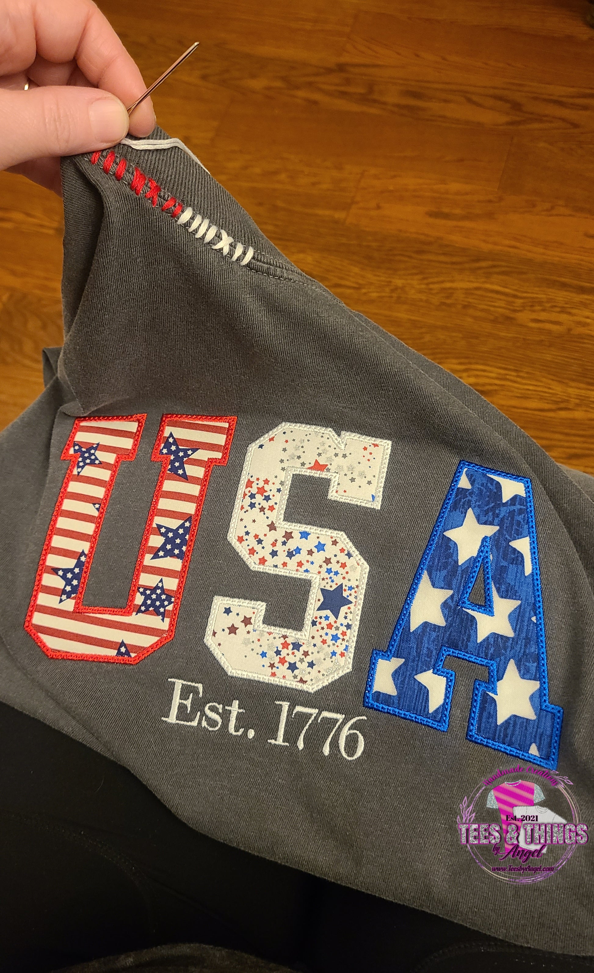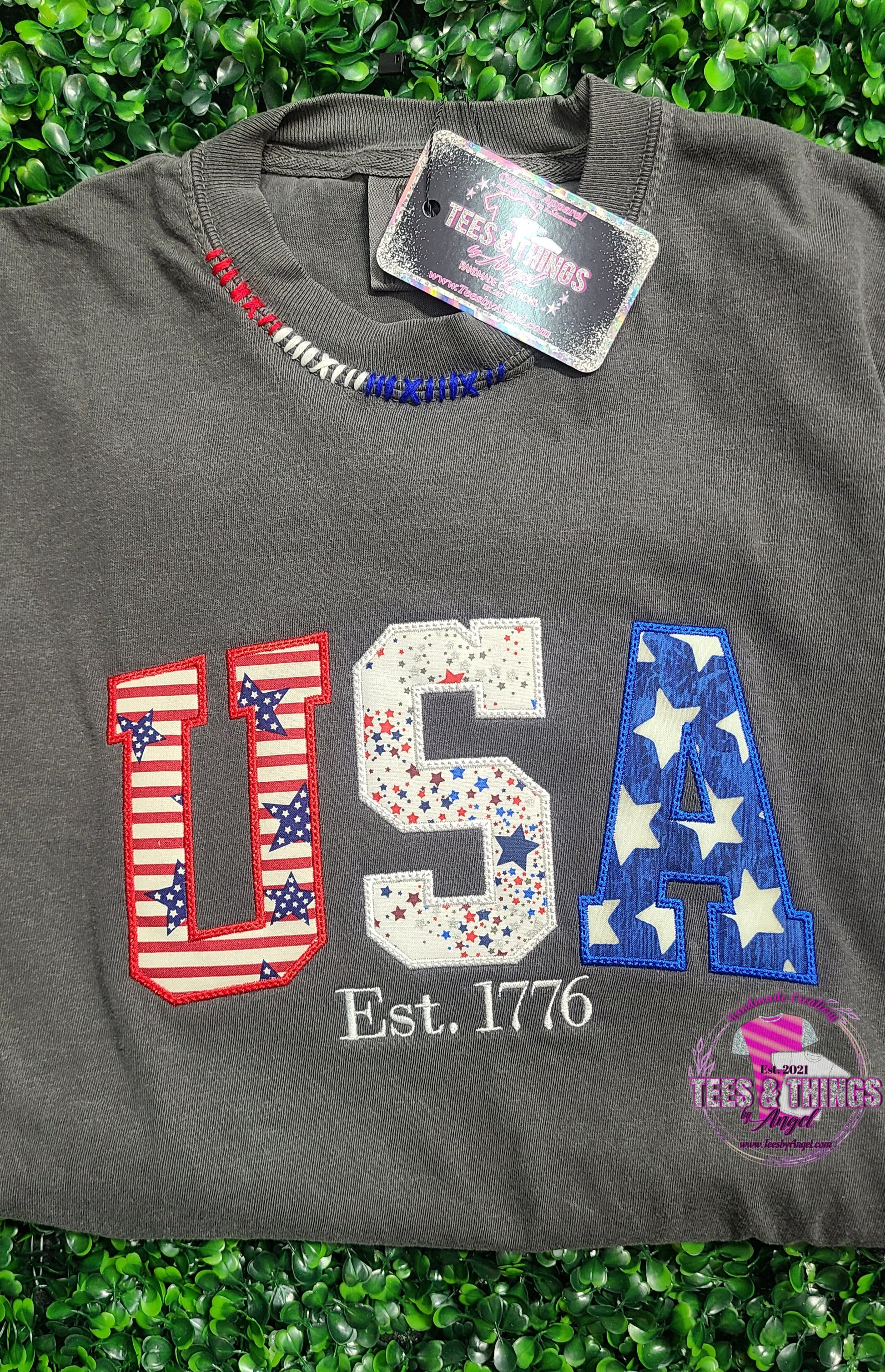 Embroidered patriotic USA 🇺🇸 teeshirt Est. 1776! This shirt is so pretty and perfect for everyday wear and for all the holidays. ❤️🤍💙