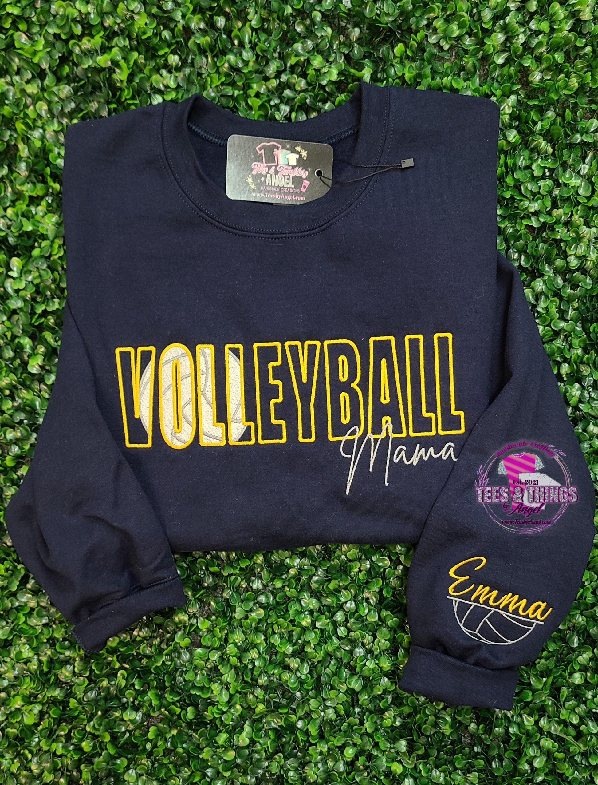 My most popular custom embroidered sweatshirt is now available for VOLLEYBALL with custom name options.Ā