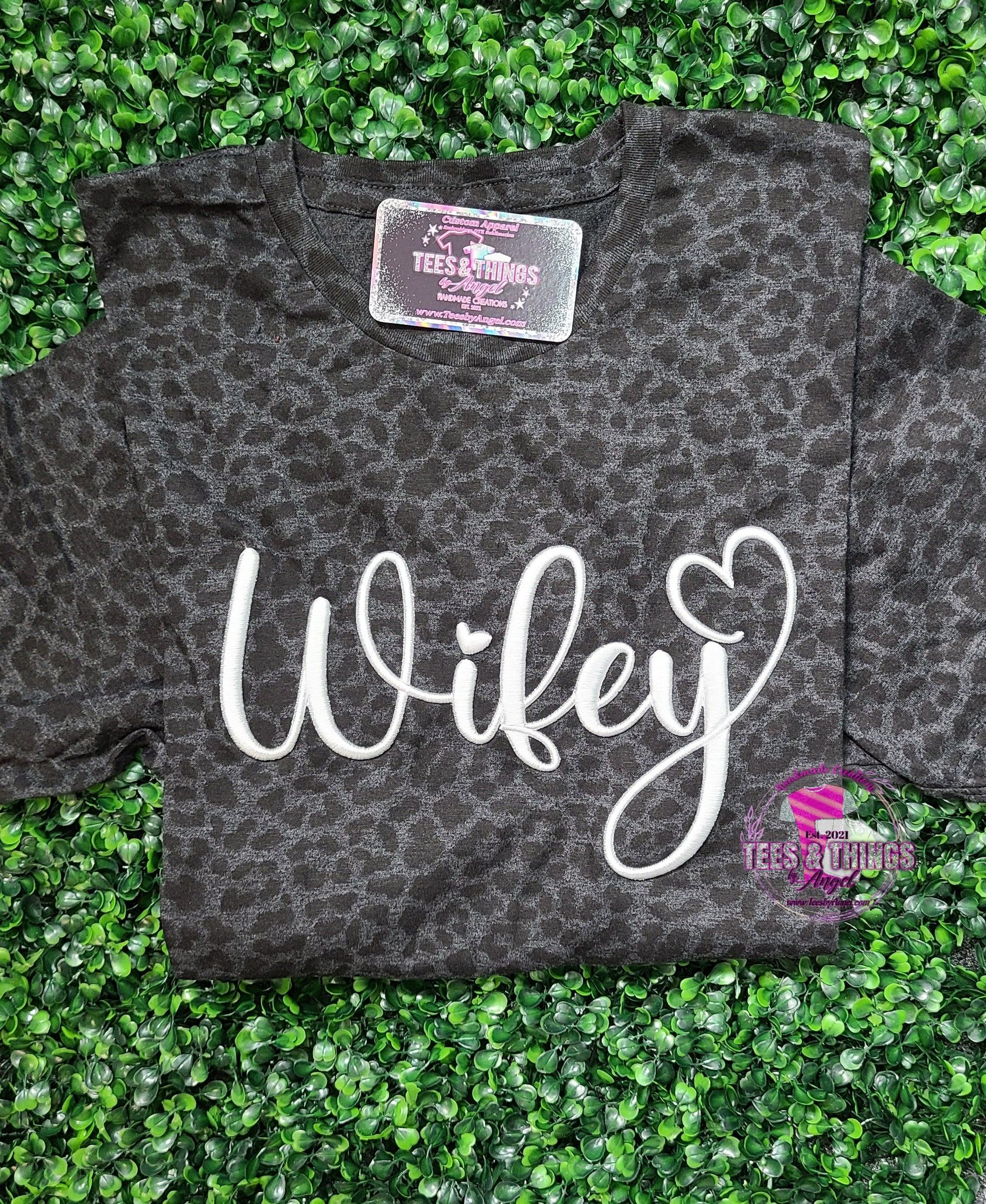 Wifey is embroidered in a special way giving it a raised up puff look that is raised up off the shirt giving it a bold and unique look.Â