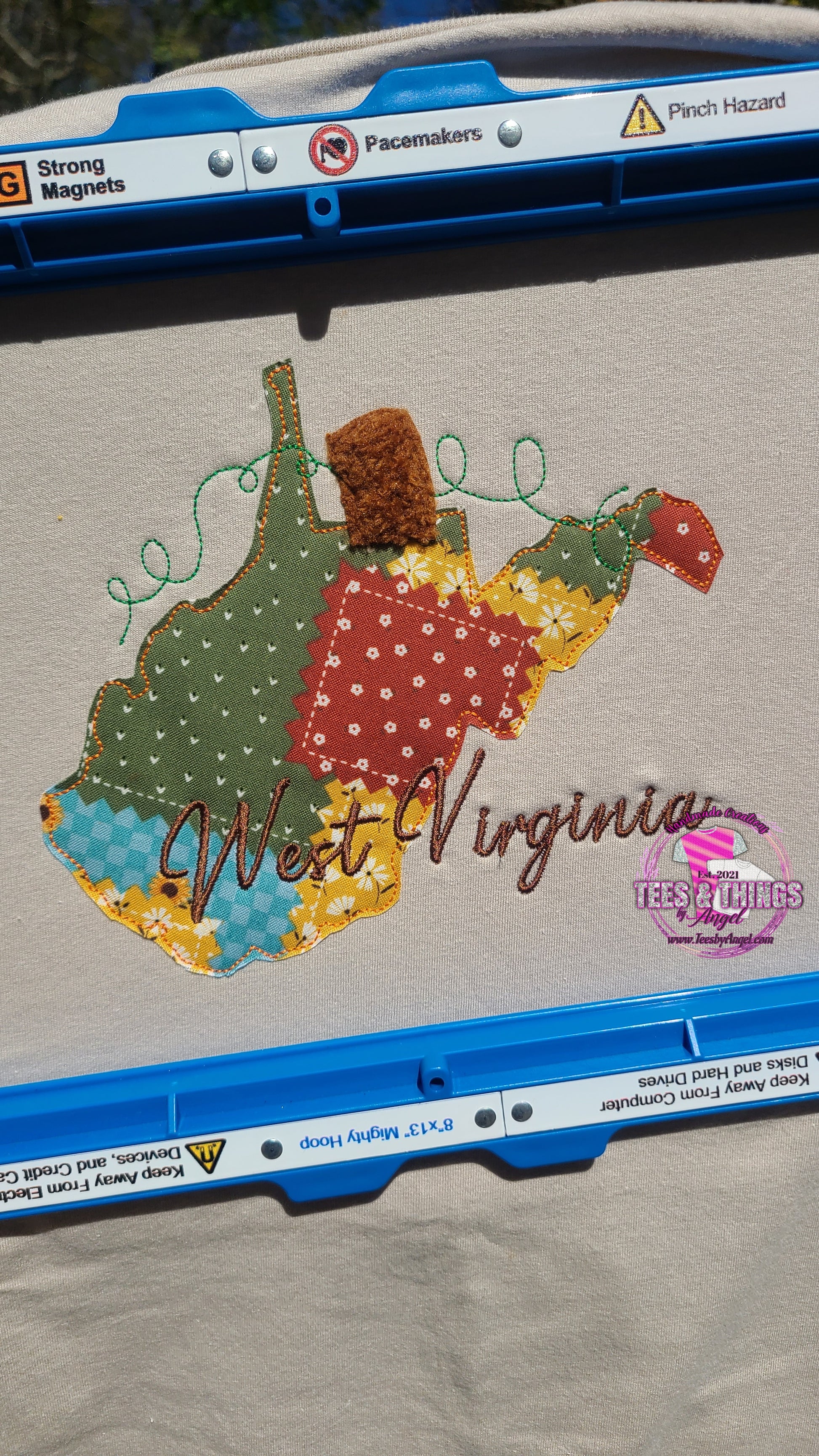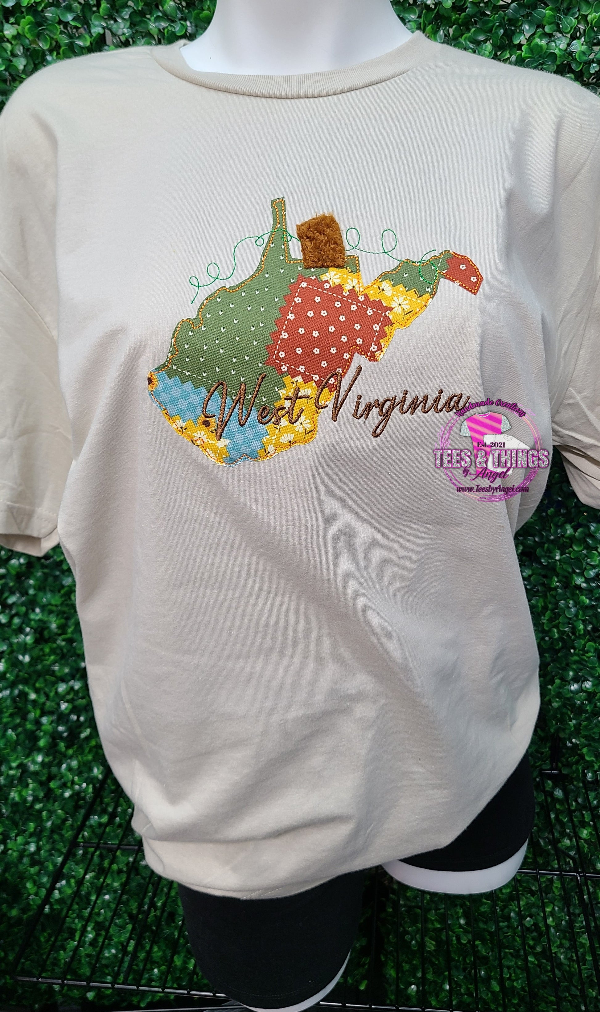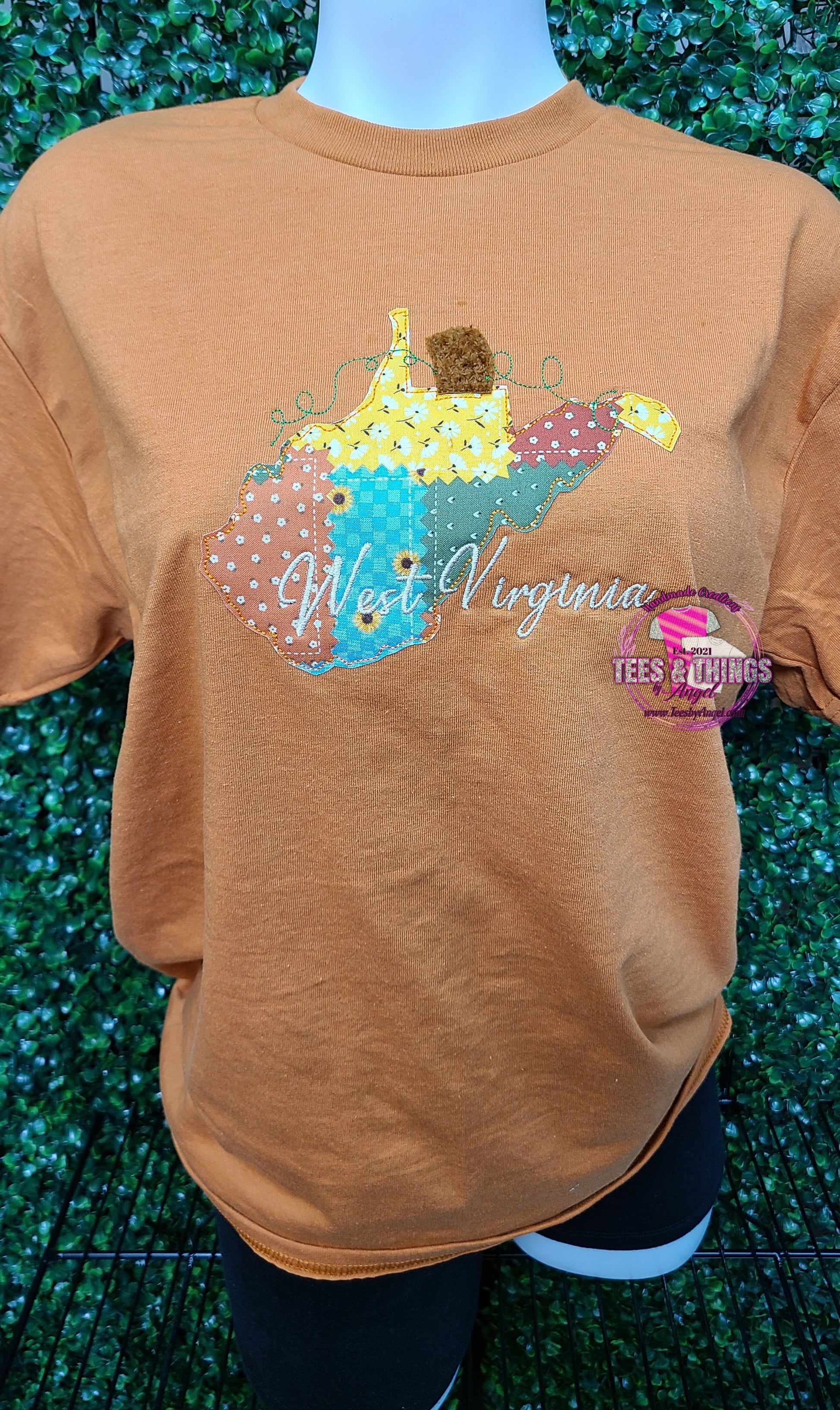 West Virginia themed Fall Pumpkin themed embroidered shirt. This shirt is adorable for all those Fall WV days.Â