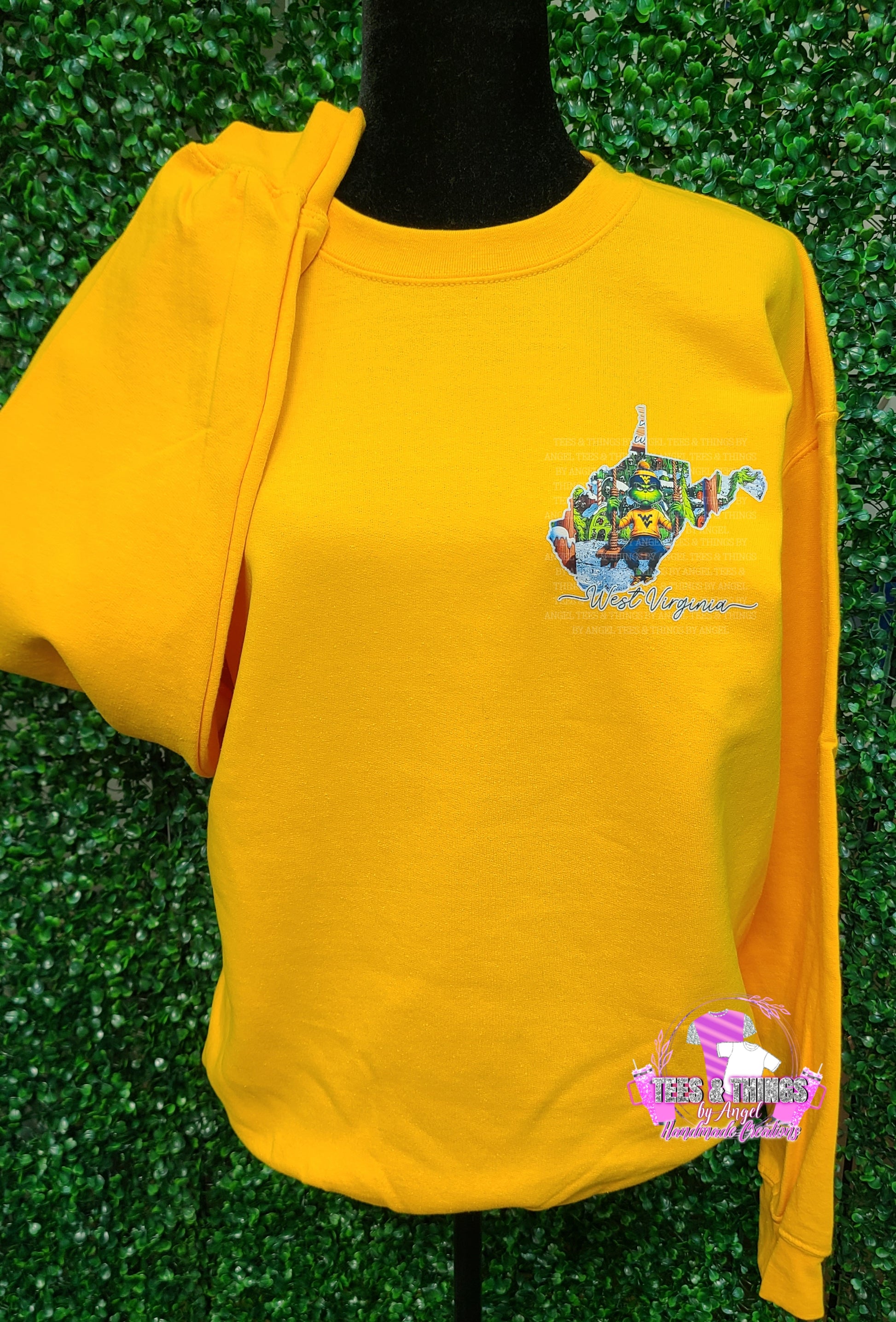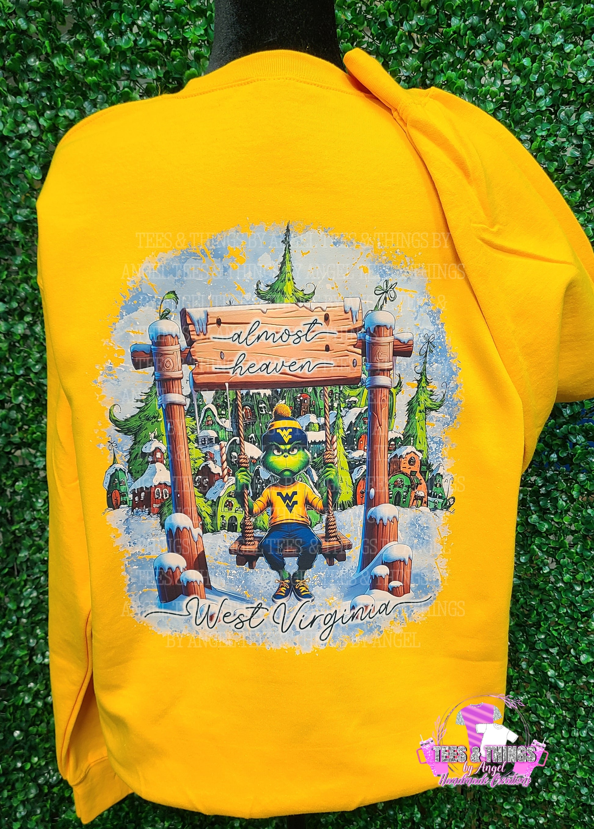 Grinch inspired WV themed whoville sweatshirt. 💙💛